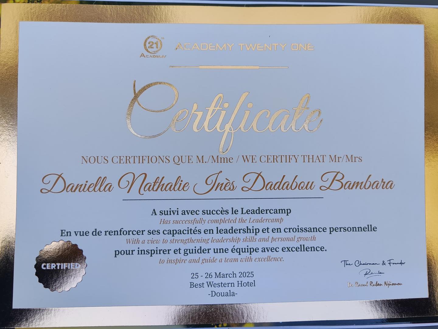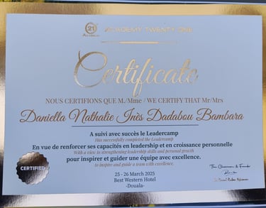 J’ai rejoint les meilleurs. J’ai grandi au sein de l'Academy Twenty One, fondée par le visionnaire Dr Raoul Ruben NJIONOU qui est un Exécutive Master Coach en développement personnel, pionnier du marketing de réseau en afrique.
