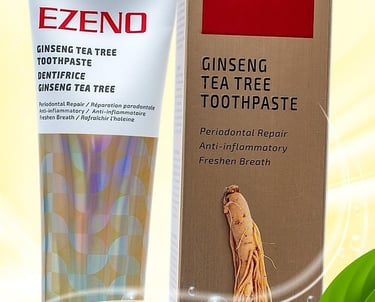 EZENO dentifrice médicale sans fluor à base de 𝐆𝐈𝐍𝐒𝐄𝐍𝐆 et de 𝐓𝐄𝐀 𝐓𝐑𝐄𝐄 .